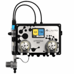 DISPOSITIF DE DOSAGE COMPACT POUR LE TRAITEMENT DE L’EAU DE PISCINE, AVEC PORTE SONDES, POMPES DE DOSAGE ET DÉBITMÈTRE DE CONTRÔLE INTÉGRÉS. CAPABLE DE MESURER LE TAUX DE PH ET DE CHLORE LIBRE POUR LES SPAS ET PISCINES JUSQU’À 250 M3.